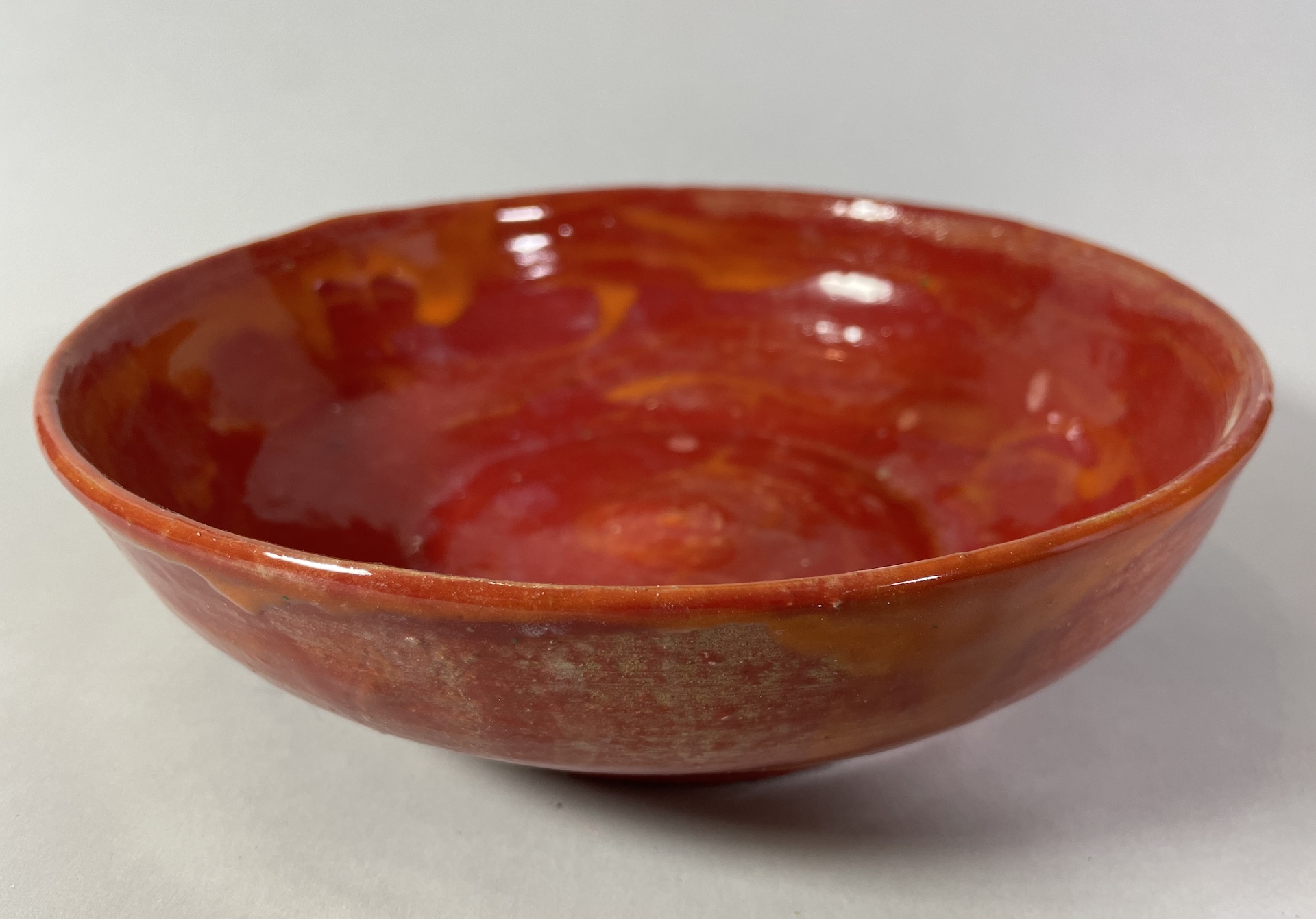 Ceramika artystyczna ceramika użytkowa. Ceramiczna miska, wykonana ręcznie z gliny, wytoczona na kole garncarskim, poszkliwiona. Wysokość 6 cm, średnica 21 cm.