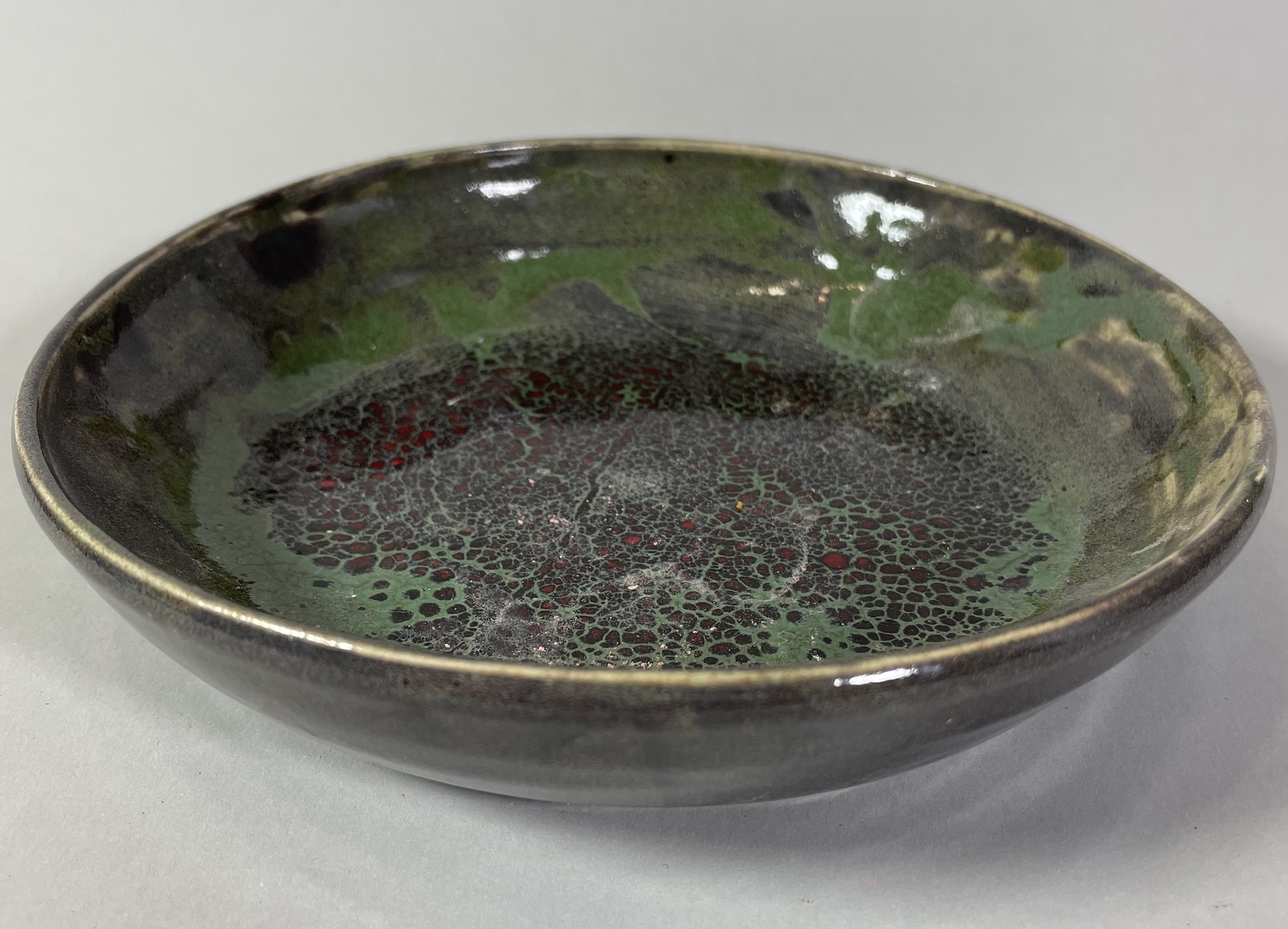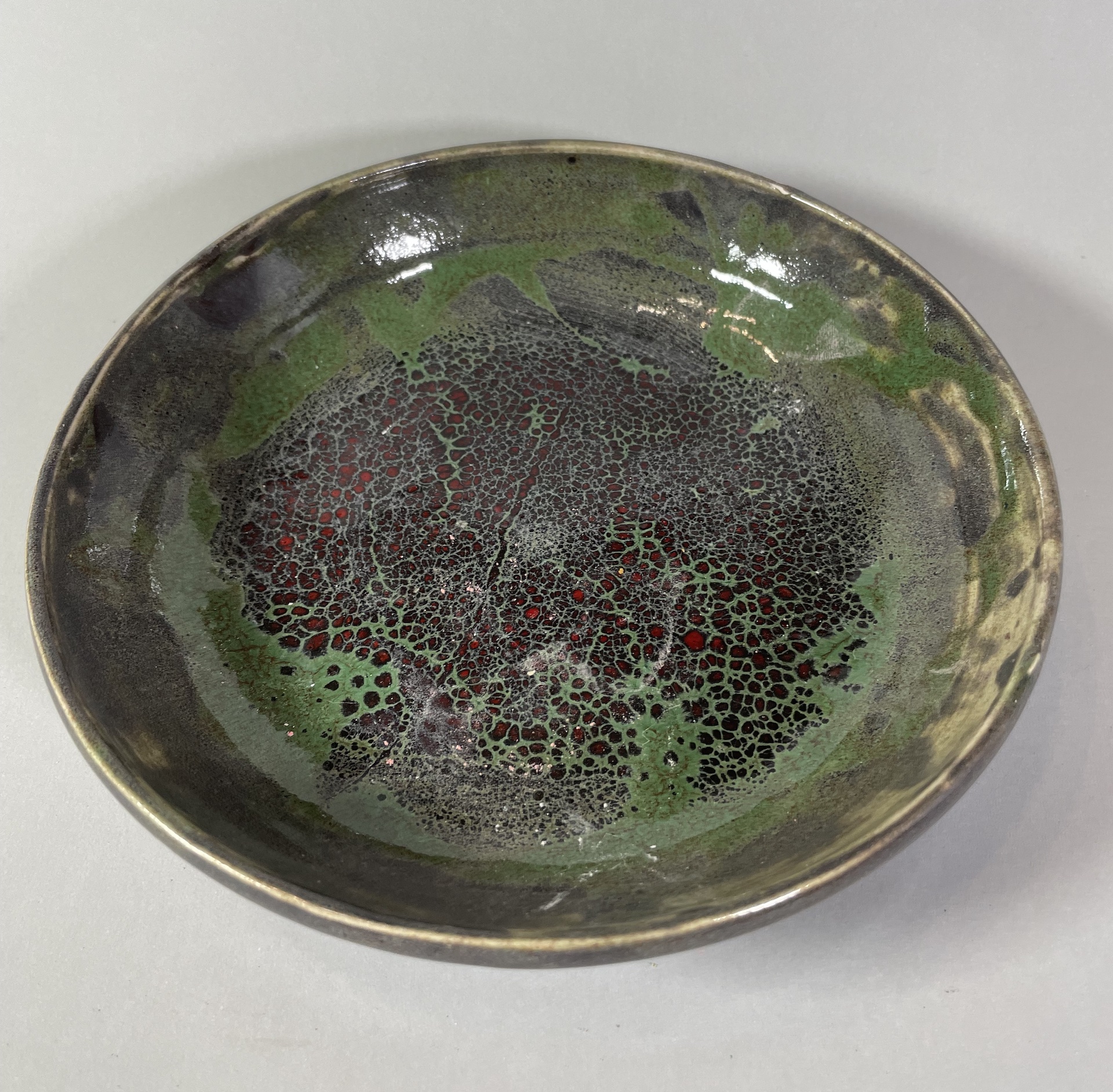 Ceramika artystyczna ceramika użytkowa. Ceramiczna miska, wykonana ręcznie z gliny, wytoczona na kole garncarskim, poszkliwiona. Wysokość 6 cm, średnica 21 cm.