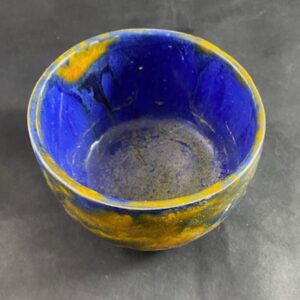 • Ceramiczna Miska, wykonana ręcznie z grubej, jasnej gliny, wytoczona na kole garncarskim, poszkliwiona. Niebieska z białymi plamami, w środku jagodowo-niebieska. Ceramika Artystyczna Gary Misaki.Ceramiczna miska niebieska z białymi plamami, w środku jagodowo-niebieska. Ceramika Artystyczna Gary Misaki.