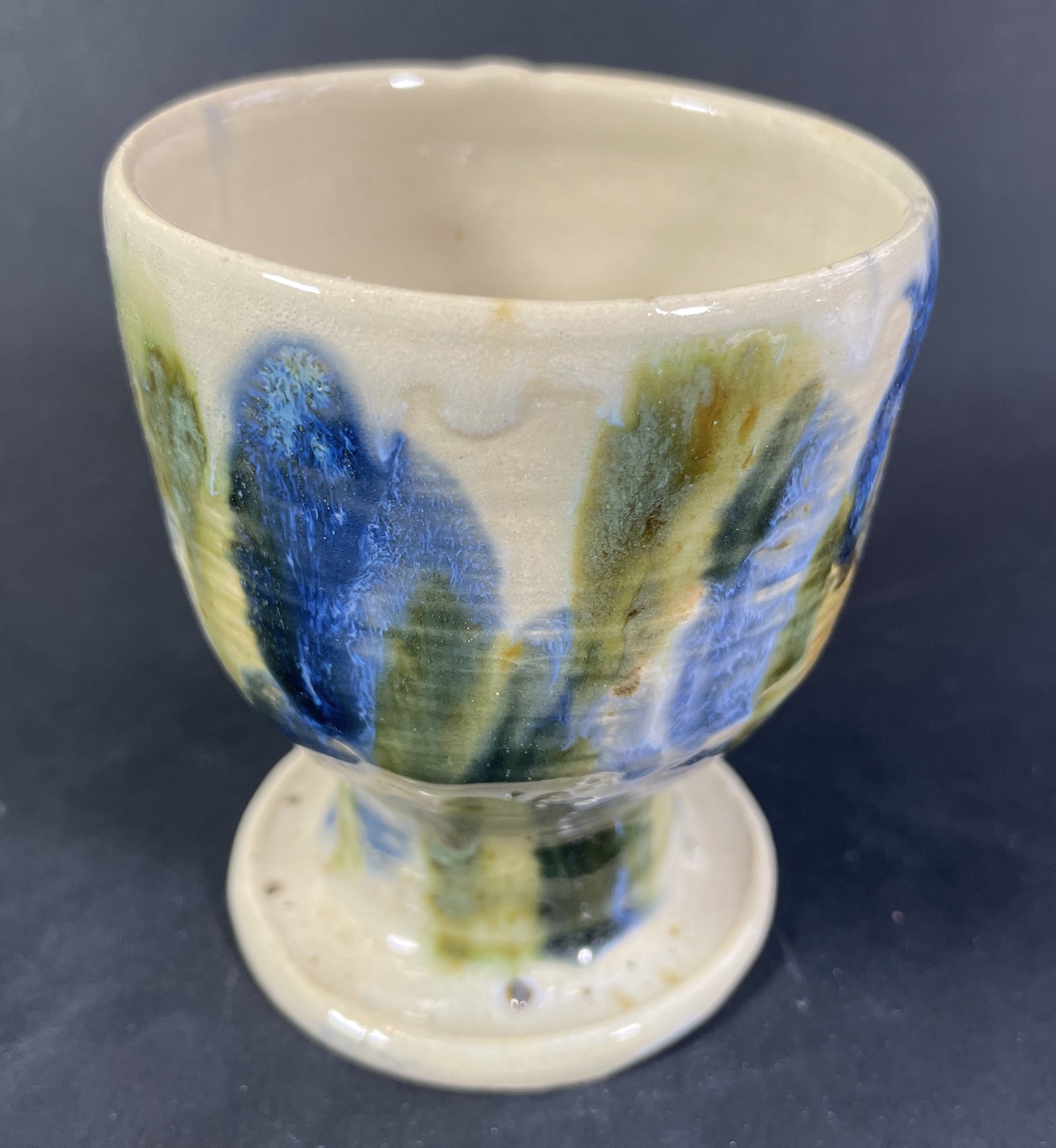 Kielich mleczny, ecru z motywami zielono-niebieskimi
