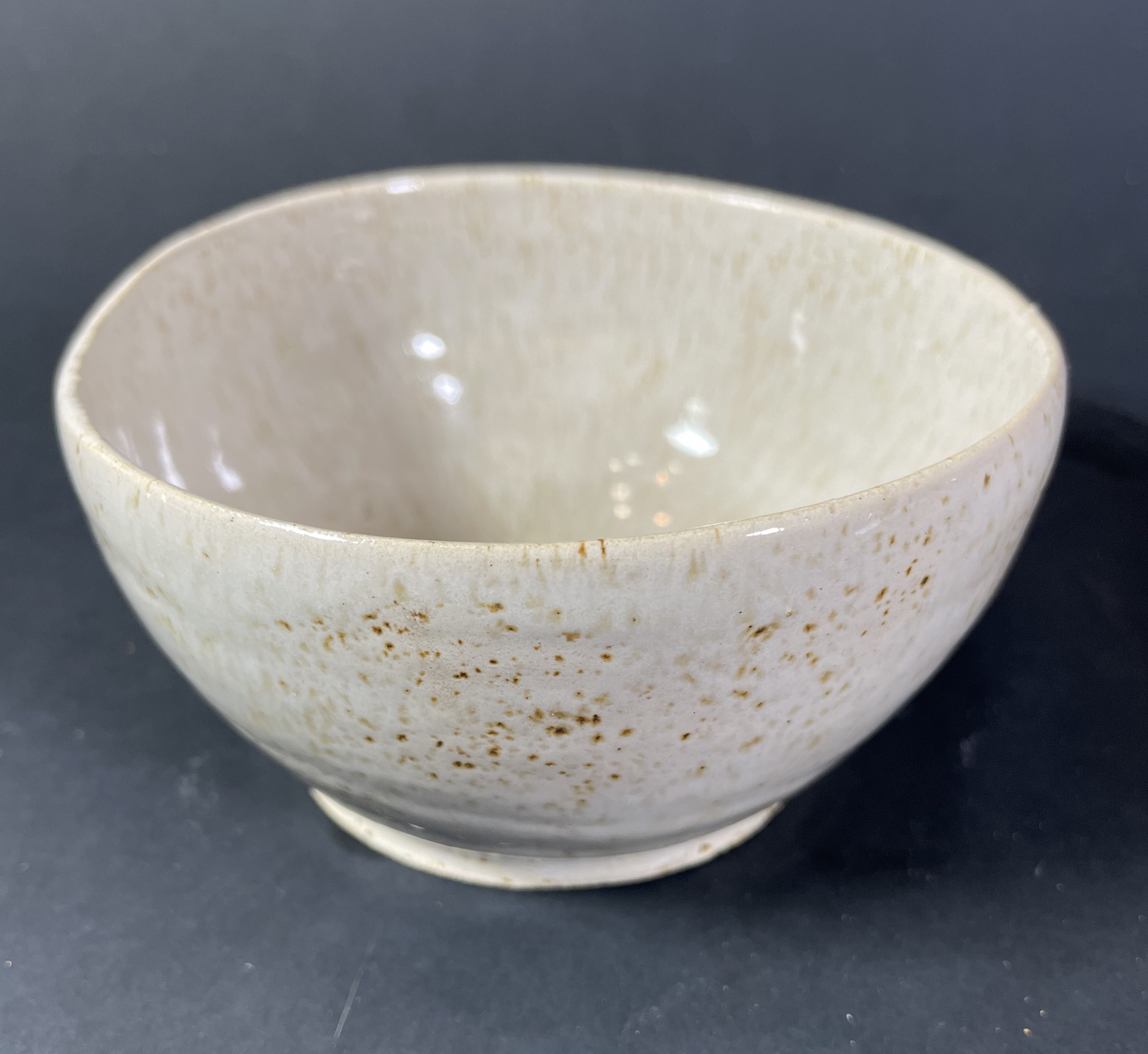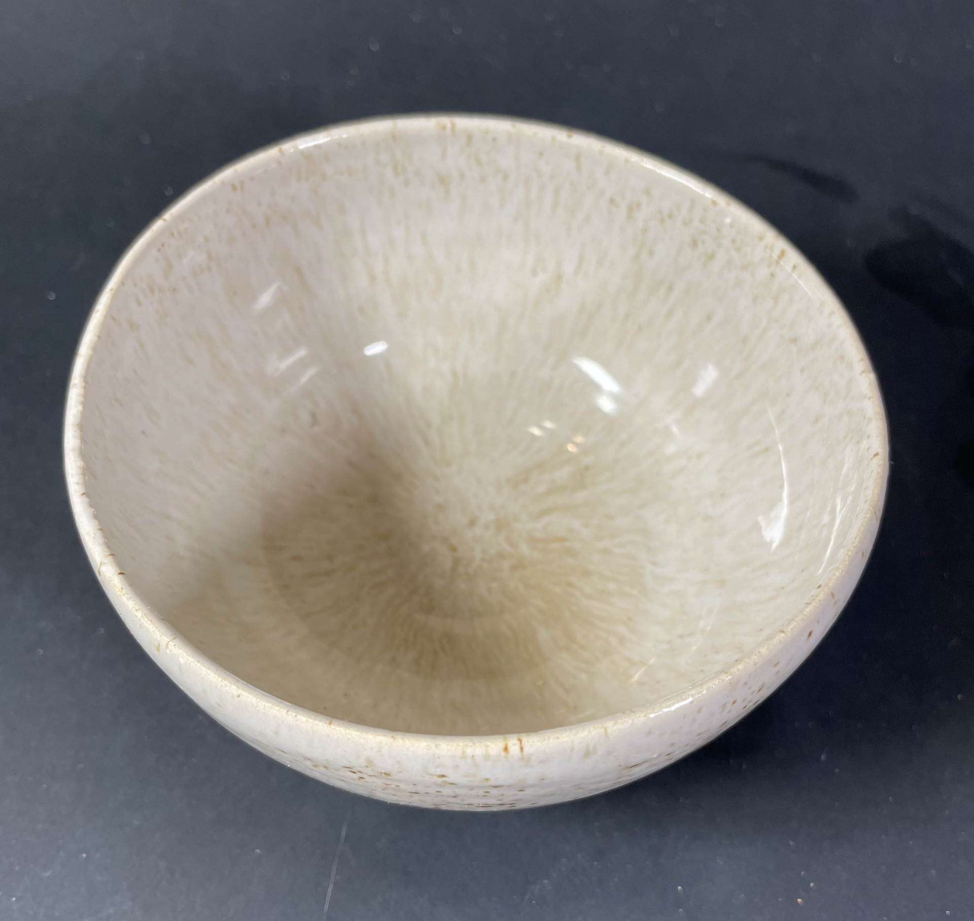 Ceramika artystyczna ceramika użytkowa. Ceramiczny Pucharek, miseczka stalowo-szary, ecru, nakrapiany , wykonany ręcznie z gliny, wytoczony na kole garncarskim, poszkliwiony. Wysokość 6,5 cm, średnica 11 cm.