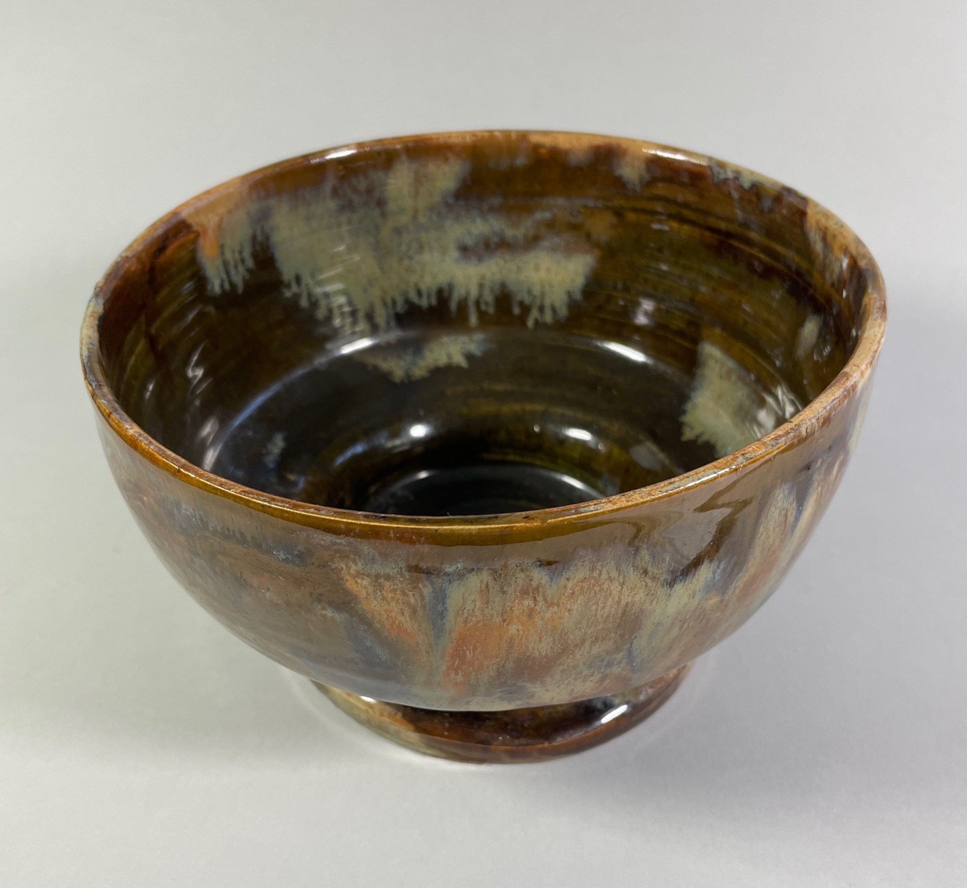 Ceramika artystyczna ceramika użytkowa. Barwy jesieni. Wielobarwny, Brązowo, zielony, w środku ciemno brązowy. Użytkowo-dekoracyjny. Średnica 18 cm, wysokość 10 cm.