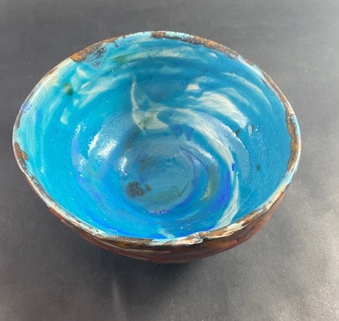 Ceramika artystyczna ceramika użytkowa. Ceramiczny pucharek wykonany ręcznie z jasnej gliny, wytoczony na kole garncarskim, poszkliwiony. Wysokość 9 cm, średnica 17cm.
