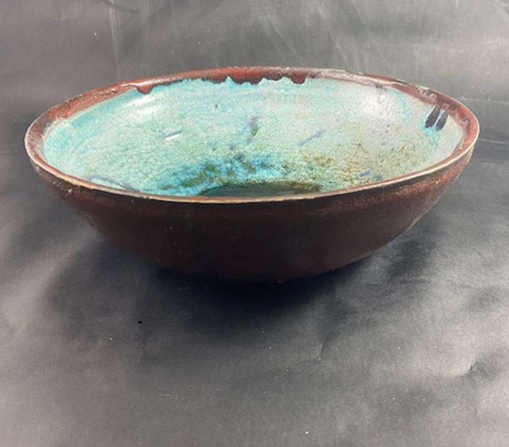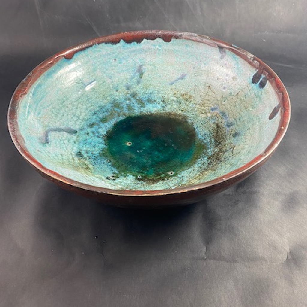 Ceramika artystyczna ceramika użytkowa. Ceramiczna Misa wykonana ręcznie z jasnej gliny, wytoczona na kole garncarskim, poszkliwionya. Wysokość 9 cm, średnica 28cm.