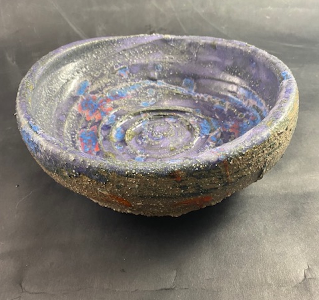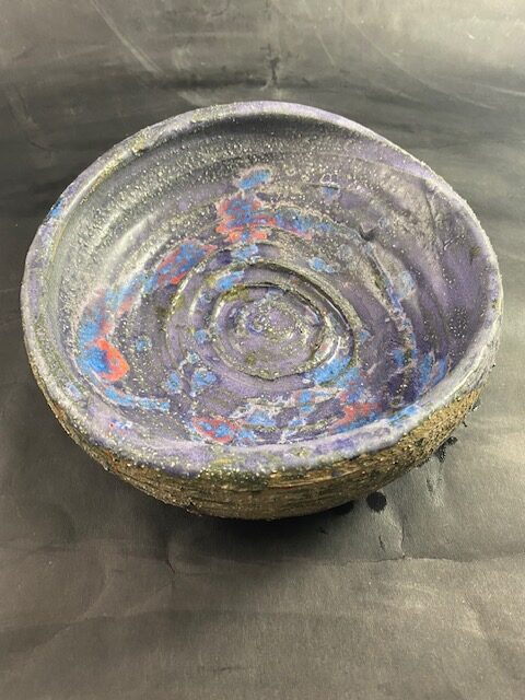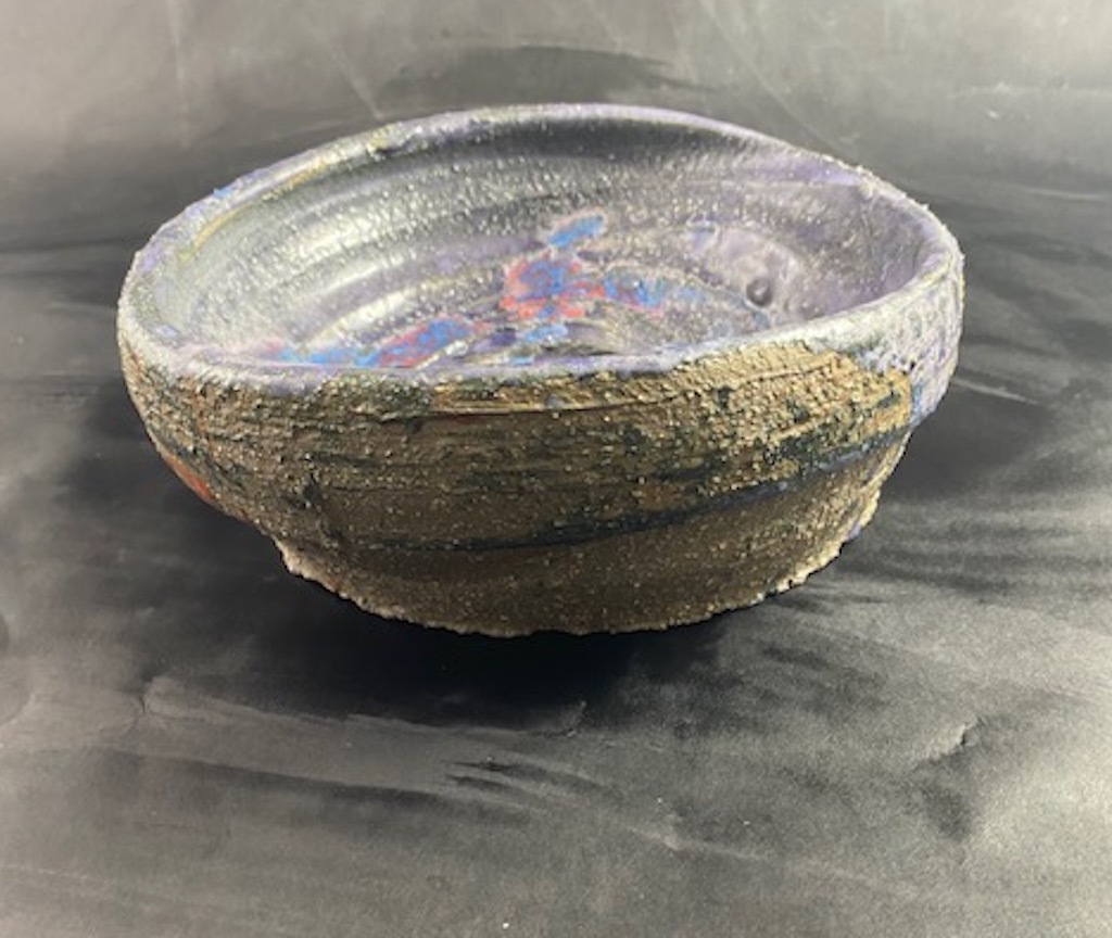 Ceramika artystyczna ceramika użytkowa. Ceramiczna Miska,, wykonany ręcznie z grubej, ciemnej gliny, wytoczonym na kole garncarskim, poszkliwiony. Bardzo surowy i piękny wygląd. Wysokość 8 cm, średnica 22cm.