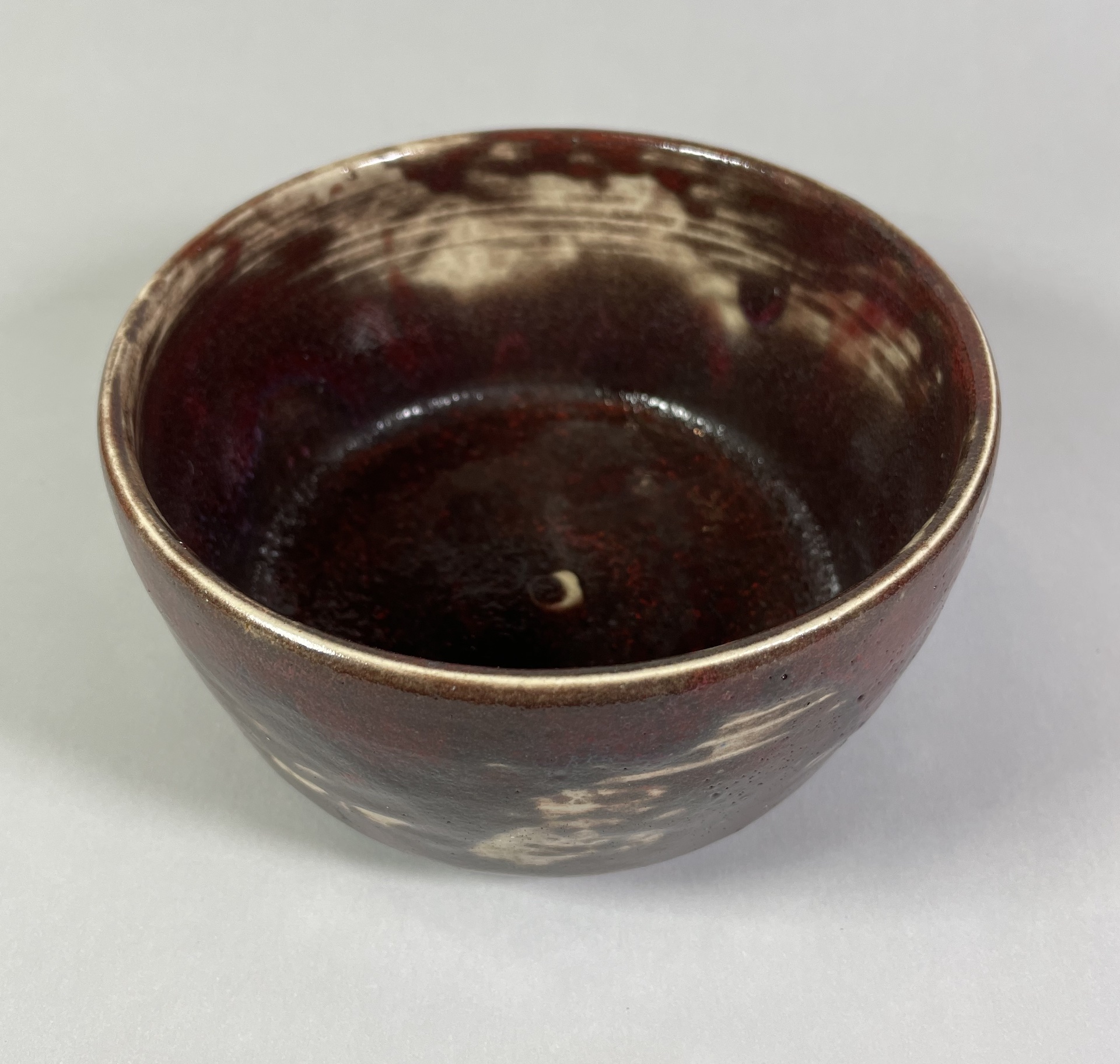 Miska czerwono-brązowa, białe przetarcia