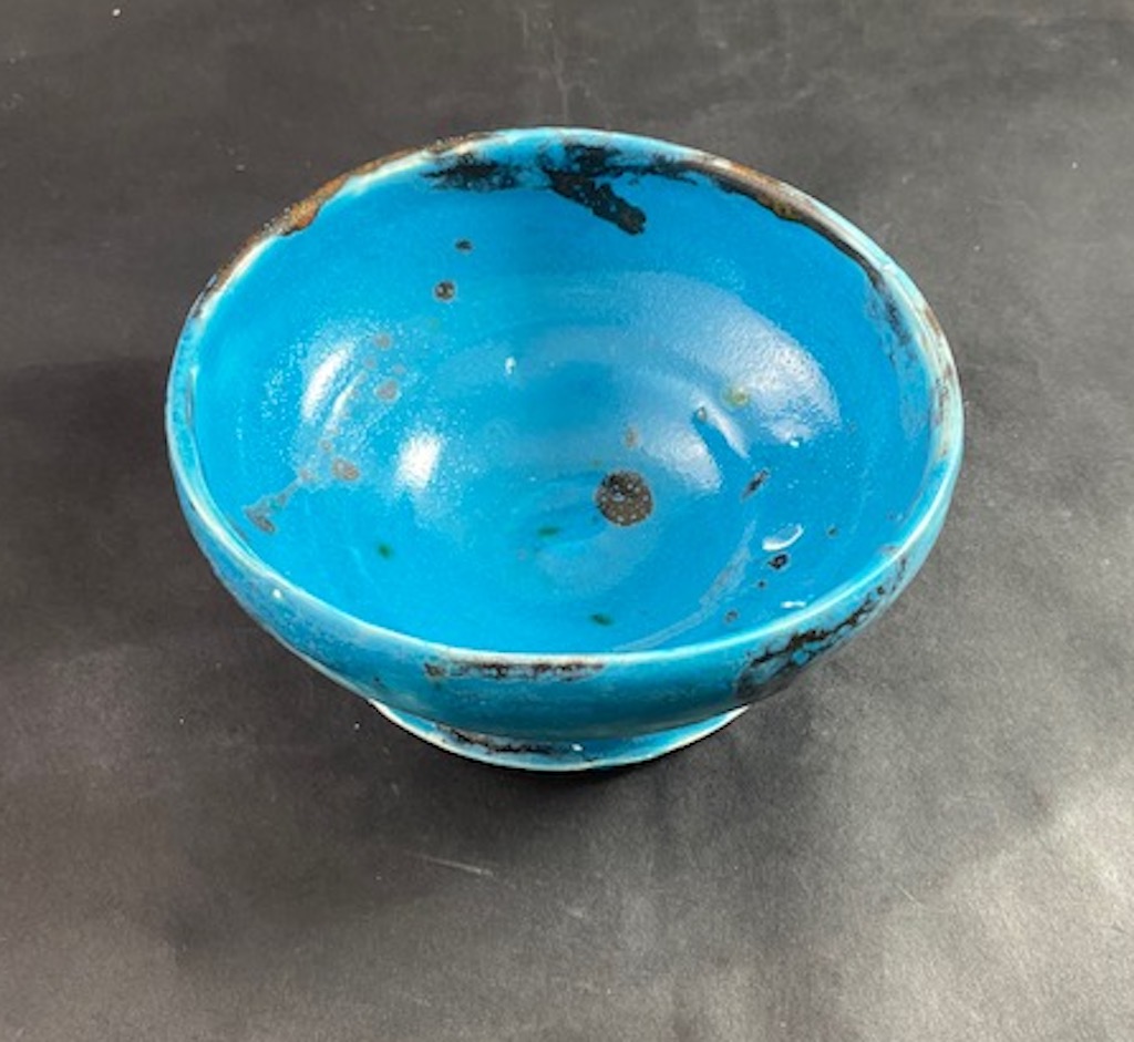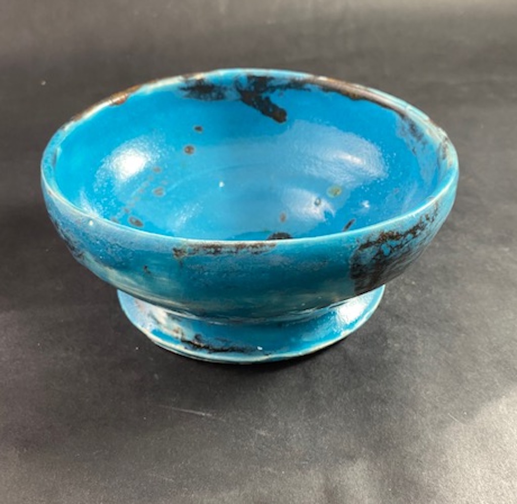 Projekt autorski, przedmiot pięknie komponujący się z gustownum posiadającym turkusowe lub niebieskie akcenty wnętrzem , z sygnaturą GM (Gary Misaki) na spodzie. Ten Ceramiczny Pucharek może być ozdobą wnętrza dla koneserów rzeczy unikalnych lub doskonałym prezentem dla rodziny czy znajomych. Stworzony w pracowni Gary Misaki w Józefowie.