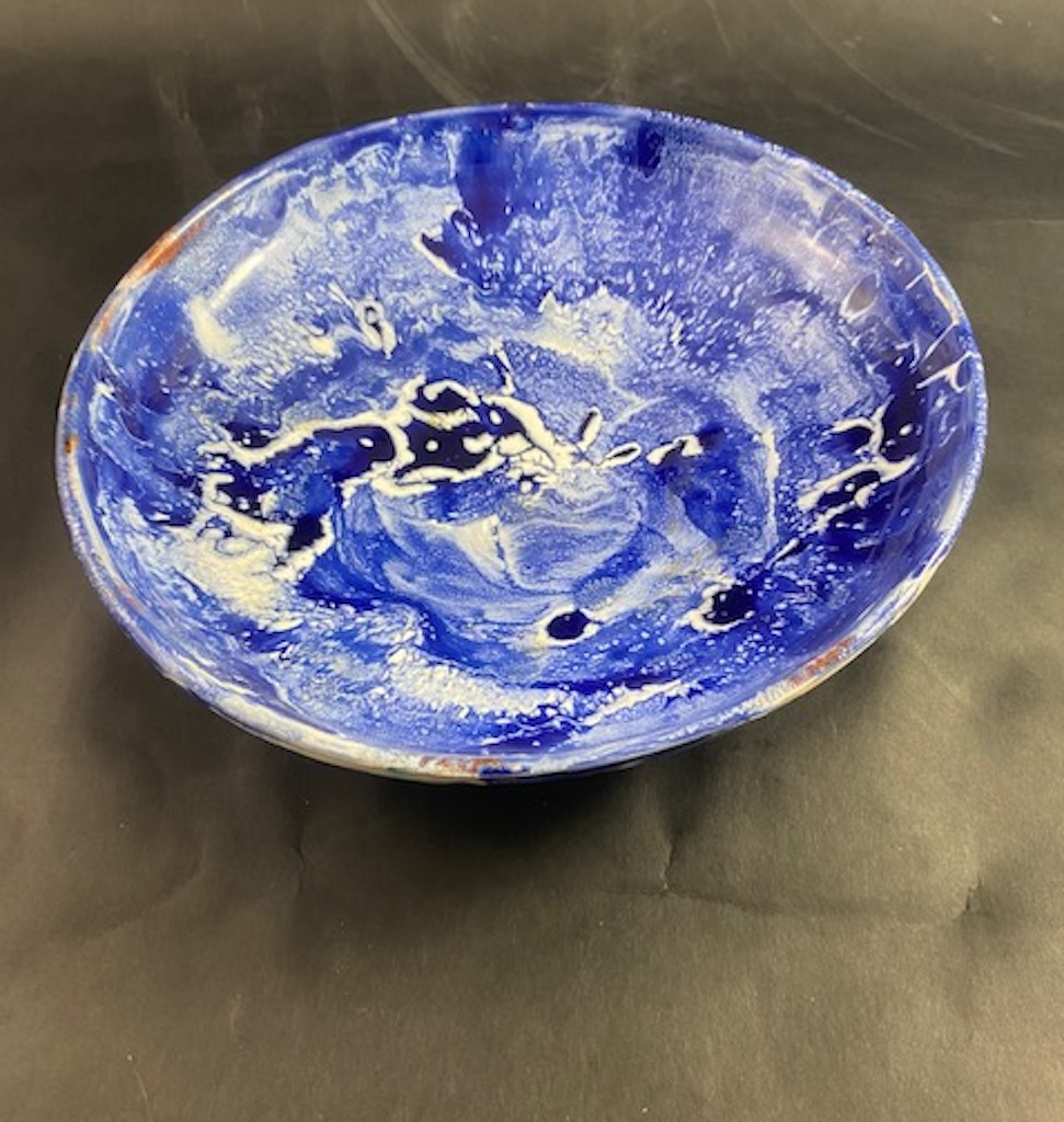 Projekt autorski, przedmiot pięknie komponujący się z eleganckim posiadającym kobaltowe, białe czy błękitne akcenty wnętrzem. Ta Ceramiczna duża misa może być ozdobą wnętrza dla koneserów rzeczy unikalnych lub doskonałym prezentem dla rodziny czy znajomych. Może służyć także jako talerz do owoców, warzyw lub suchych produktów. Stworzona w pracowni Gary Misaki w Józefowie.