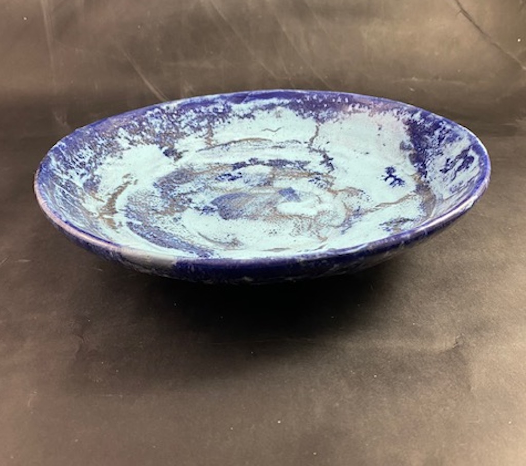 Projekt autorski, przedmiot pięknie komponujący się z eleganckim posiadającym kobaltowe, białe czy błękitne akcenty wnętrzem. Wewnątrz kole atramentowy i ,,baby blue”. Ta Ceramiczna misa może być ozdobą wnętrza dla koneserów rzeczy unikalnych lub doskonałym prezentem dla rodziny czy znajomych. Może służyć także jako talerz do owoców, warzyw lub suchych produktów. Stworzona w pracowni Gary Misaki w Józefowie.