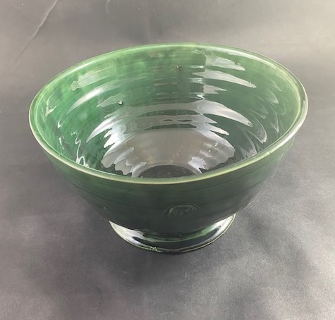 Ceramika artystyczna ceramika użytkowa. Ceramiczna waza z rodziny ,,malachity” wykonana ręcznie z białej gliny, wytoczona na kole garncarskim, poszkliwiona. Wysokość 12 cm, średnica 21cm.
