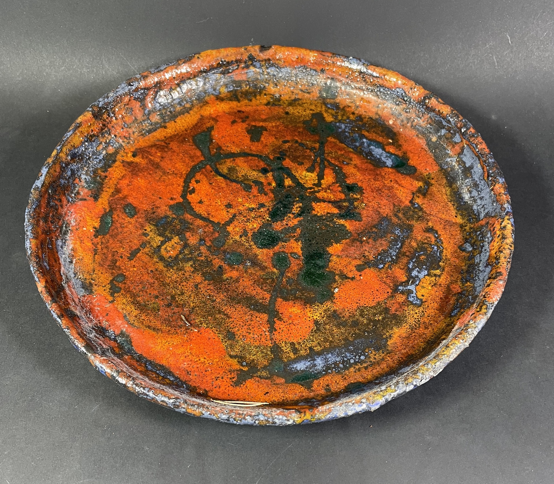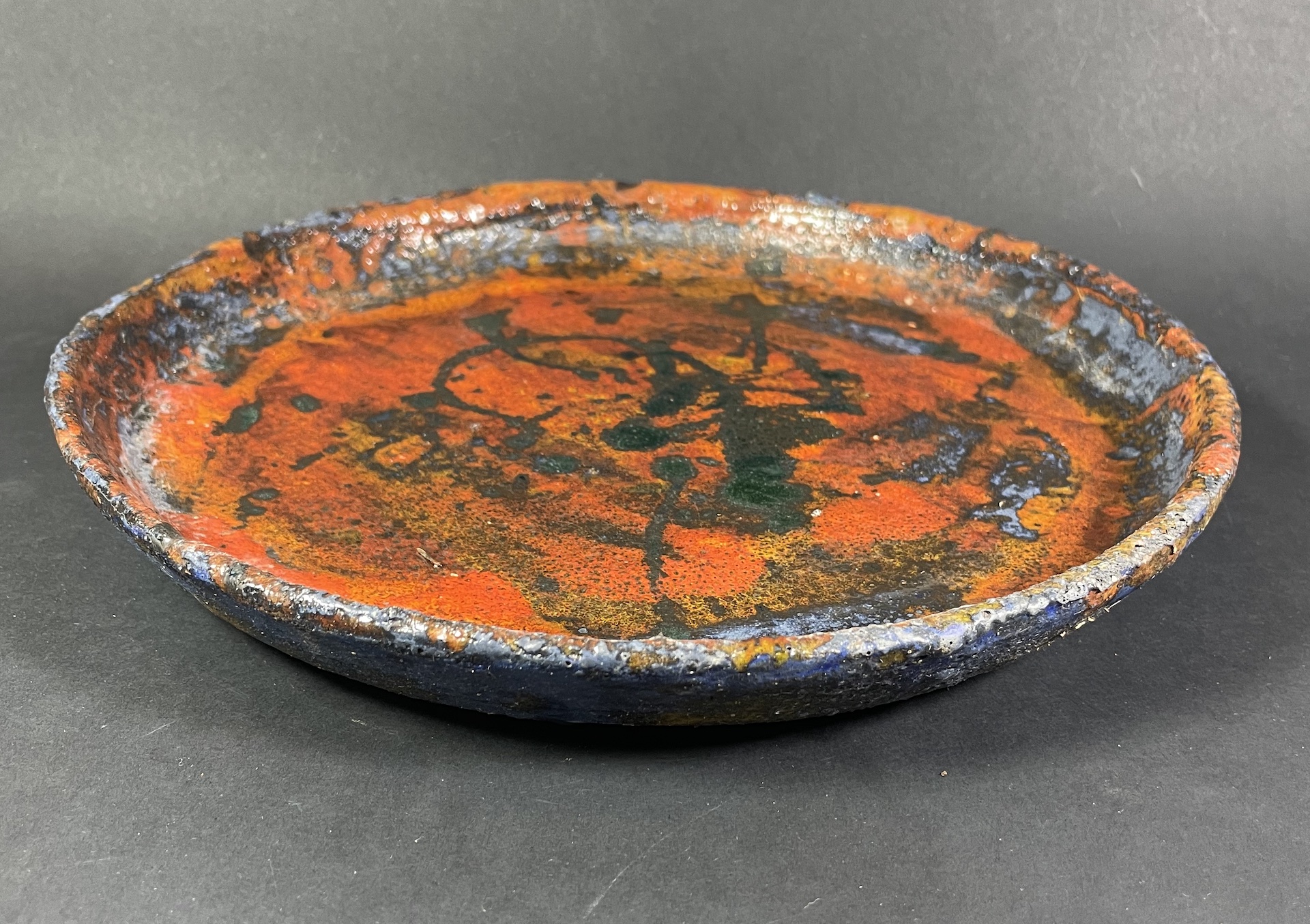 Ceramika artystyczna ceramika użytkowa. Ceramiczny Talerz wykonany ręcznie z gliny, wytoczony na kole garncarskim, poszkliwiony. Wysokość 3,5 cm, średnica 26 cm.