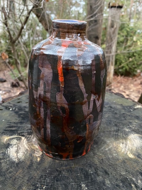 Ceramika artystyczna ceramika użytkowa. Ceramiczna butelka, wazon, wykonany ręcznie z szarej gliny, wytoczony na kole garncarskim, poszkliwiony. Wysokość 20 cm, średnica 11cm. Wielokolorowy. Ozdobny.
