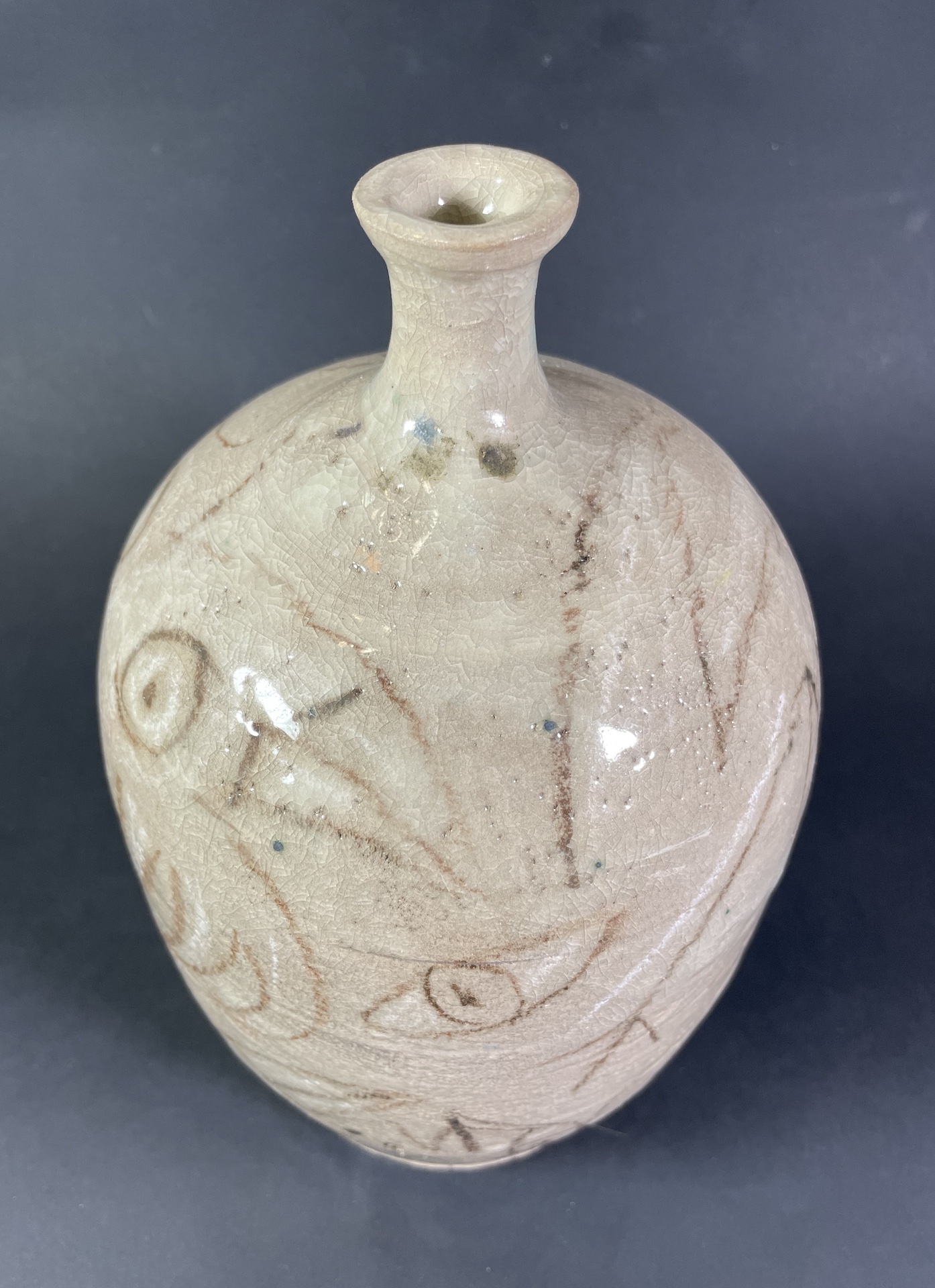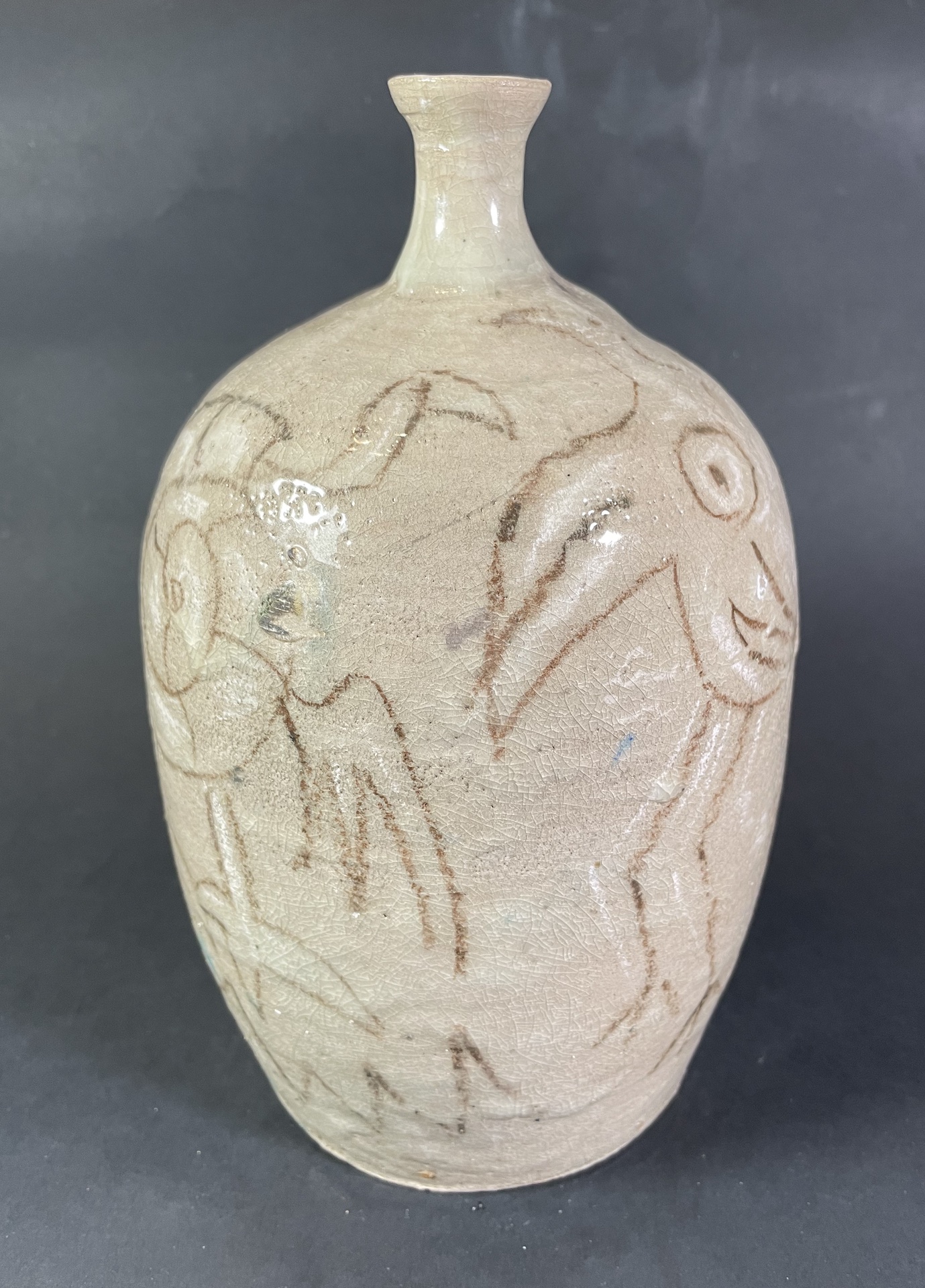 Ceramika artystyczna ceramika użytkowa. Ceramiczna butelka, wazon, wykonany ręcznie z gliny, wytoczony na kole garncarskim, poszkliwiony. Wysokość 22,5 cm, średnica 13cm. Szary. Ozdobny.