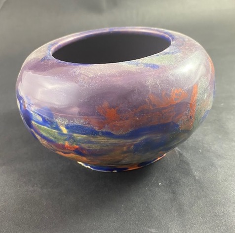 Ceramika artystyczna ceramika użytkowa. Ceramiczny wazonik, wykonany ręcznie z glin mieszanych, wielokolorowych. Wytoczony na kole garncarskim, poszkliwiony. Wysokość 9 cm, średnica 14cm. Wielobarwny.