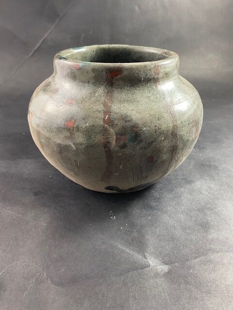 Ceramika artystyczna ceramika użytkowa. Ceramiczny wazon, ręcznie robiony (handmade) z szarej gliny, wytoczony na kole garncarskim, poszkliwiony. Wysokość 15 cm, średnica 19 cm.